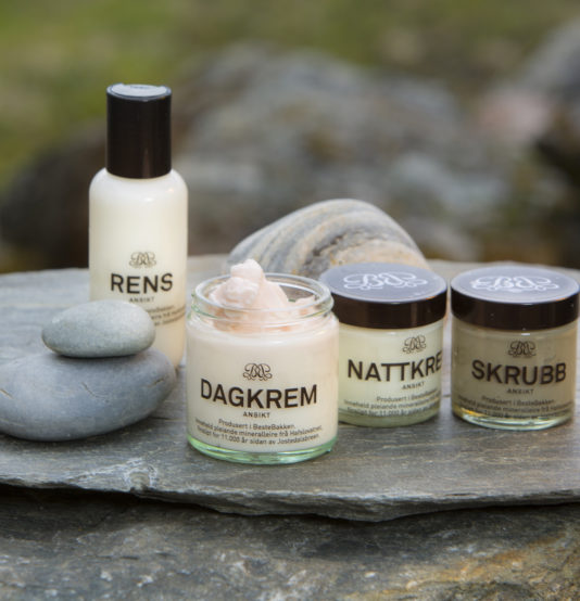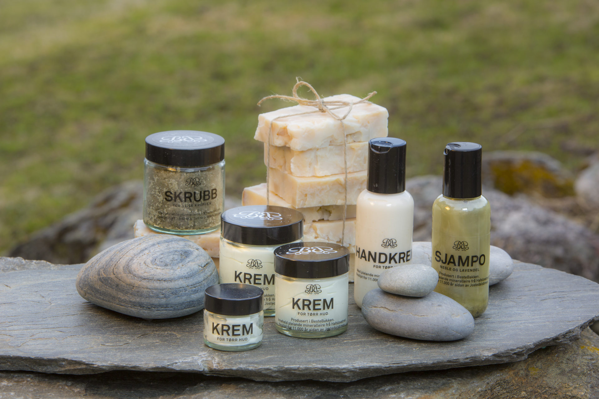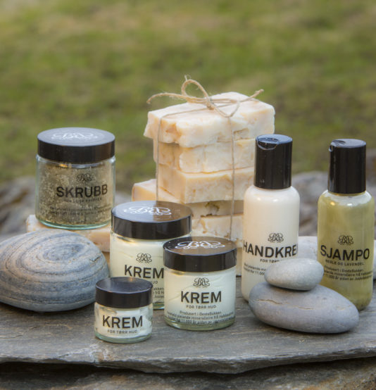 Vi utviklar eigne kremmar og produkt med utgangspunkt i både eigen urtehage og viltveksande plantar. I hudpleieprodukta finn du 11000 år gammal leire med dei finaste partiklane som Jostedalsbreen har slipt laus frå fjellet. Dei har vore lagra i Hafslovatnet gjennom mange tusen år.